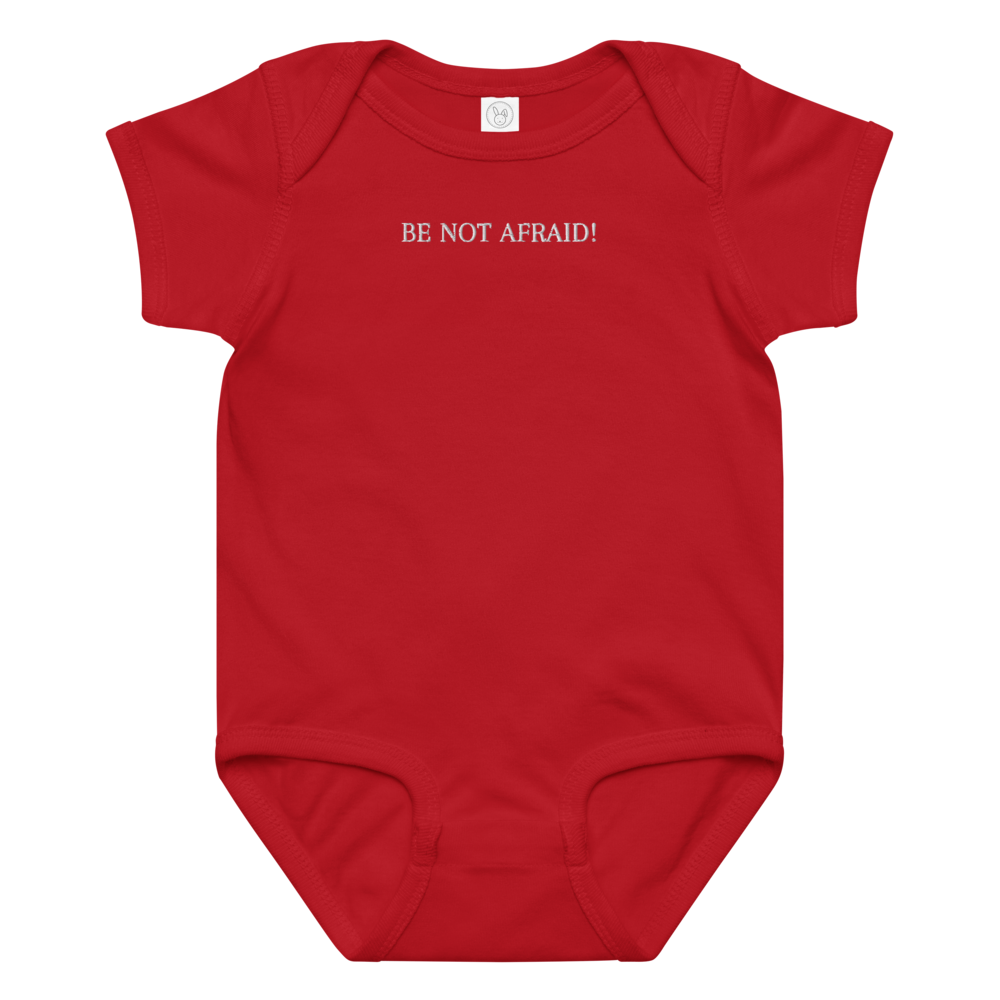 SHOP › Saint John Paul II Baby Jersey Bodysuit Image 1 of 1 Saint John Paul II Baby Jersey Bodysuit $18.00 Saint Johl Paul II, pray for us!! • 100% combed ringspun cotton • Fabric weight: 5 oz./yd.² (170 g/m²) • Regular fit • Lap shoulders • Three-snap closure • Envelope neckline • Blank product sourced from India Size: 12M 18M 24M Add To Cart Added! Saint Johl Paul II, pray for us!! • 100% combed ringspun cotton • Fabric weight: 5 oz./yd.² (170 g/m²) • Regular fit • Lap shoulders • Three-snap closure • Envelope neckline • Blank product sourced from India Reviews Reviewer Name Review Date Star Rating Description Posted on Etsy Product Show More